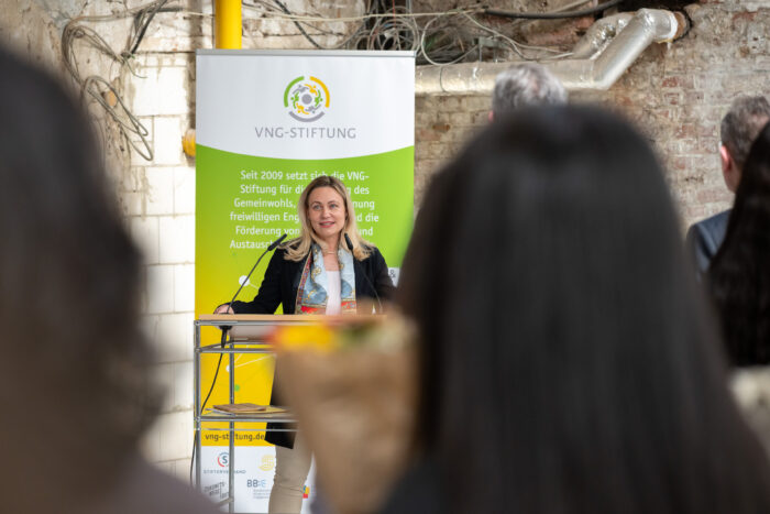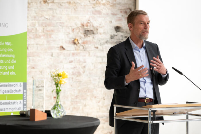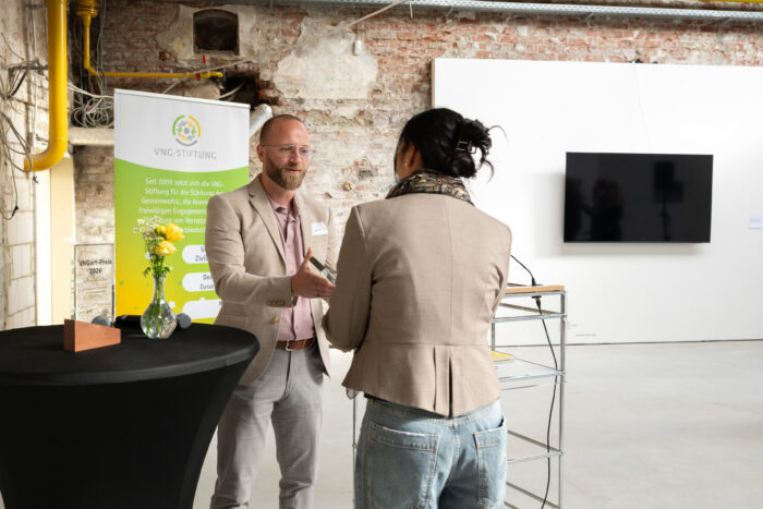 Ehrenamtliches und gesellschaftliches Engagement gehören seit jeher zur Identität von VNG. Mit der VNG-Stiftung setzen wir uns seit über 15 Jahren aktiv für die kulturelle und soziale Entwicklung der Region ein und fördern über VNGart Künstlerinnen und Künstler aus der Region. Der VNGart-Preis ist ein Ausdruck dieses Engagements: Wir möchten nicht nur herausragende Talente würdigen, sondern auch künstlerische Perspektiven auf gesellschaftliche Entwicklungen fördern. Kunst eröffnet neue Blickwinkel, regt zum Dialog an und stärkt die kulturelle Vielfalt unserer Region – Werte, die fest in unserem Unternehmen verankert sind.